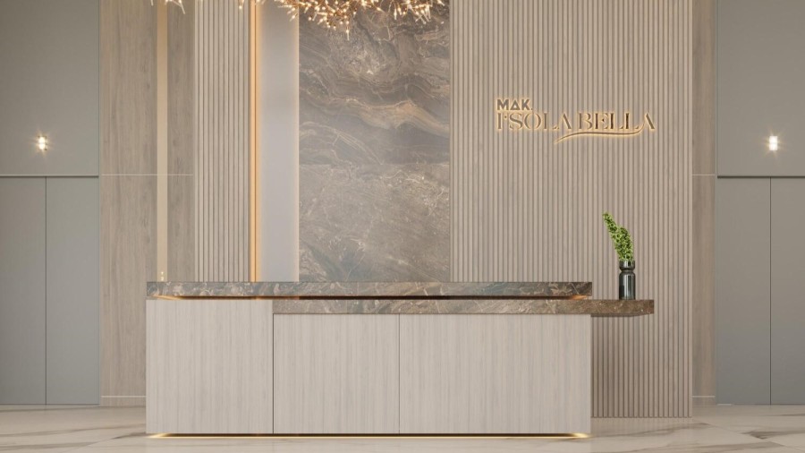 Situated in the lively Jumeirah Village Circle of Dubai, the I'Sola Bella development provides an unparalleled residential experience where daily life feels like a continuous retreat. Modeled after the picturesque I'Sola Bella Island in Italy, MAK I'Sola Bella blends resort-like opulence with metropolitan elegance, creating a peaceful sanctuary within the heart of the city. Inspired by the refined allure of European design, the MAK I'Sola Bella structure features a unique facade that combines graceful curves with clean lines. Its neutral color scheme, enhanced by soothing shades of blue and green, fosters an atmosphere of tranquility and resort-style luxury in a contemporary urban setting. The lobby of I'Sola Bella welcomes residents and visitors into a space that seamlessly integrates sophistication with modern coziness. The thoughtfully designed interiors reflect a serene ambiance, showcasing the height of modern urban living. With its blend of luxury and dynamic city vibrancy, I'Sola Bella transforms daily living into an exceptional experience.